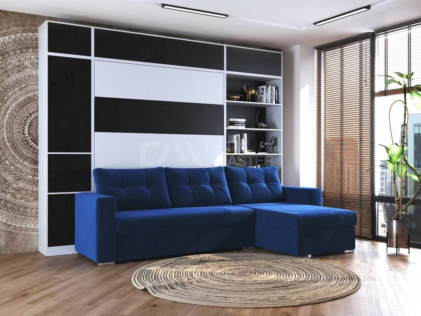 Шкаф-кровать трансформер с диваном "Big Family Balance"работает на механизме раскладывания собственной разработки "Balance". Кровать раскладывается легким движением руки, превращаясь в полноценное спальное место. Просто потяните за ножку-маятник, которая самостоятельно фиксируется в нужное положение при опускании.